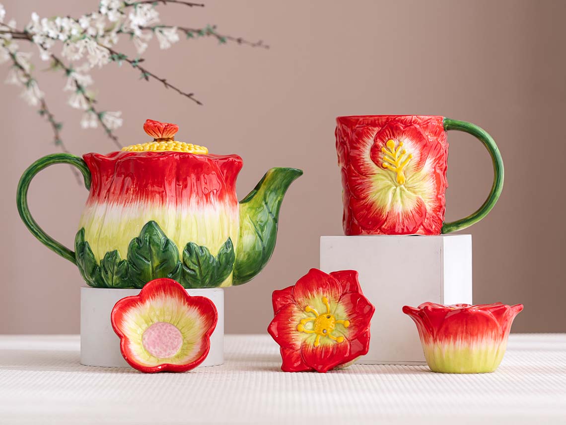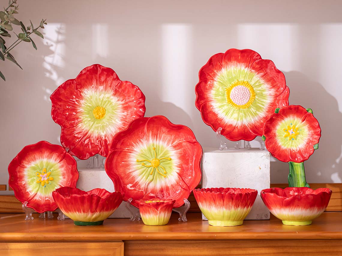 Hand-painted flower-shaped tableware