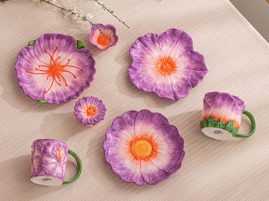 Hand-painted flower-shaped tableware